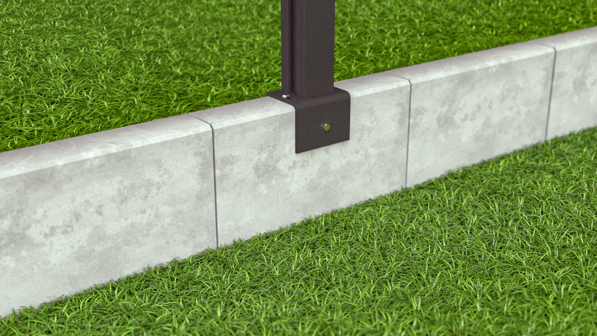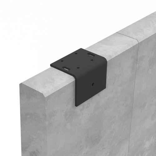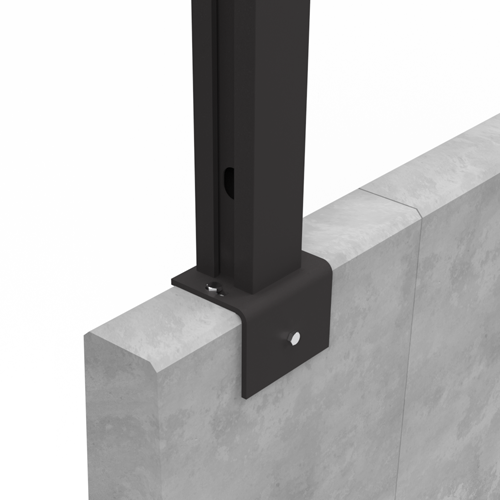 Kombination aus Fußplatte und L-Stein Winkel, zur optimalen Befestigung des Solarzauns auf einer Beton L-Stein Mauer (bei Wahl dieses Produktes wird die Standard-Fußplatte aus dem Lieferumfang entnommen).