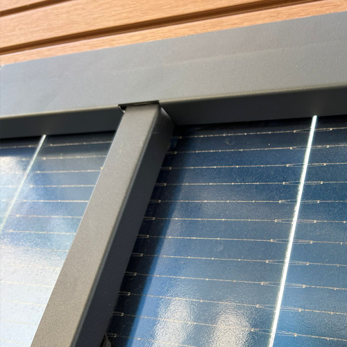 Abdeckleisten für die langen PV-Modulseiten, zur flächigen Abdeckung des Kabelverlaufs auf der PV-Modul Rückseite. Befestigung erfolgt jeweils durch im Lieferumfang enthaltenen Bohrschrauben.