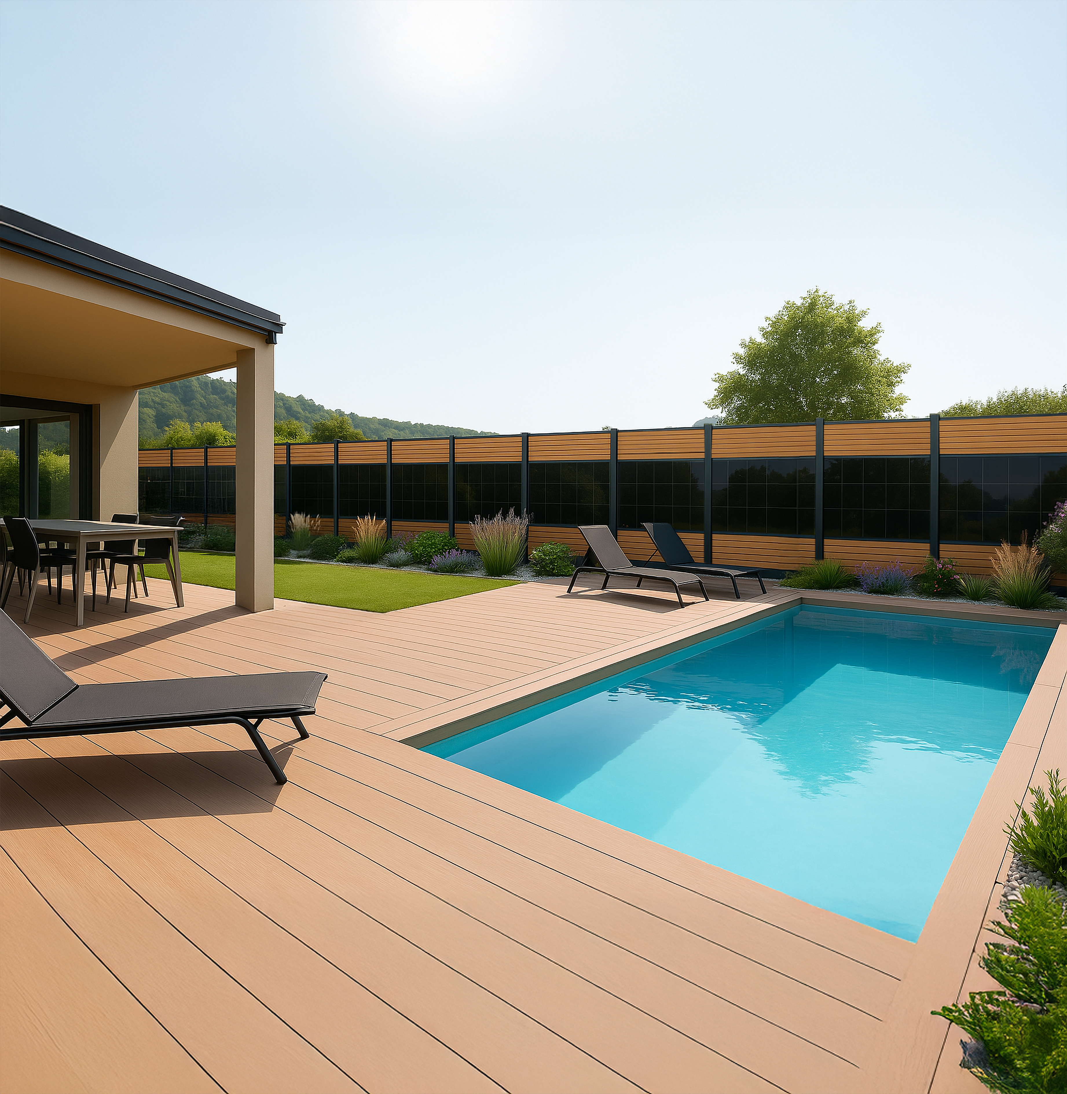 Unsere WPC-Lamellen vereinen die natürliche Optik von Holz mit den Vorteilen moderner Materialien. Die coextrudierte Oberfläche schützt vor Ausbleichen, Feuchtig keit und Verschmutzung – dauerhaft und ohne Pflegeaufwand. Ideal als Sichtschutz zwischen den Modulen oder für rein blickdichte Zaunelemente – farbstabil, wetterfest und formschön.